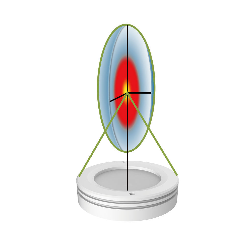 The focal zone is the area of maximum energy intensity. lts size is basically independent of the selected energy level. By contrast, the size of the treat-ment zone depends on the selected energy level and is generally larger than the focal zone.