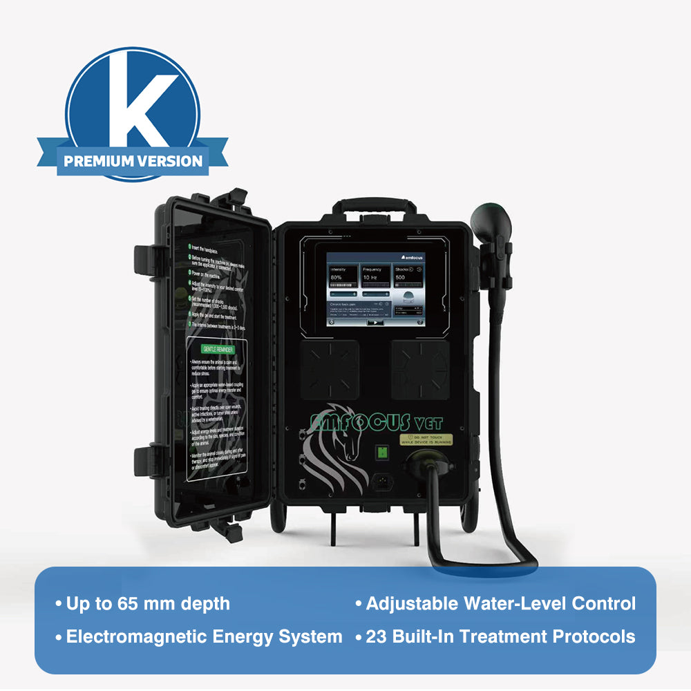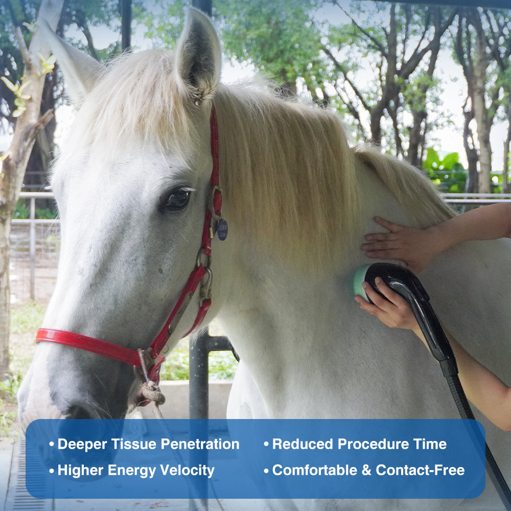 It’s suitable for horses, dogs, and cats — addressing musculoskeletal, soft-tissue, and joint-related conditions in both clinical and field settings.
