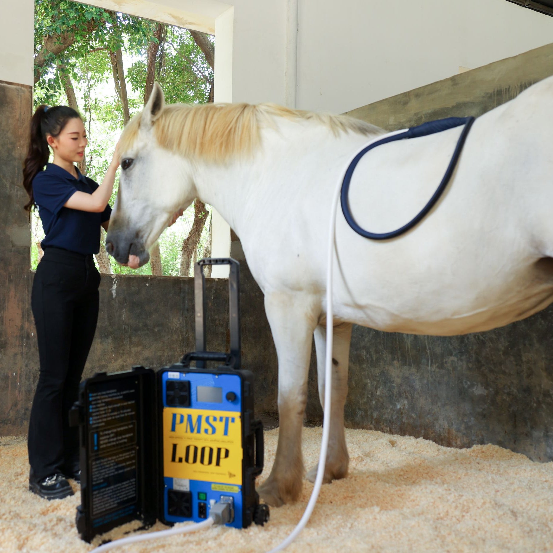 PMST LOOP PRO-B is a professional equine PEMF therapy system delivering pulsed, continuous, and high-intensity magnetic fields to promote tendon healing, pain relief, and faster recovery.
