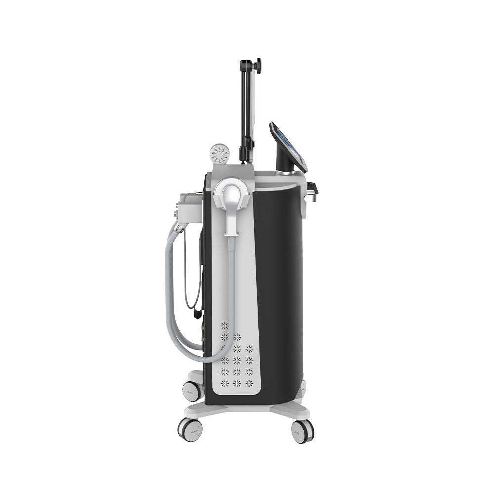 A quiet water-cooling system ensures stable performance during extended operation, while the mobile wheeled design fits easily into professional physiotherapy and rehabilitation environments.